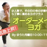 2024/07/30 / 最終更新日時 : 2026/02/19 aditri お知らせ 月10:00「オーダーメイドヨガ」byゆうた 「オーダーメイドヨガ」は、少人数で、その日の体の状態を見ながら丁寧に進めるヨガクラスです。 インストラクターが事前に簡単なカウンセリングを行い、ストレス解消、柔軟性向上、筋力強化など、あなたの目標に最適なプログラムを組み […]